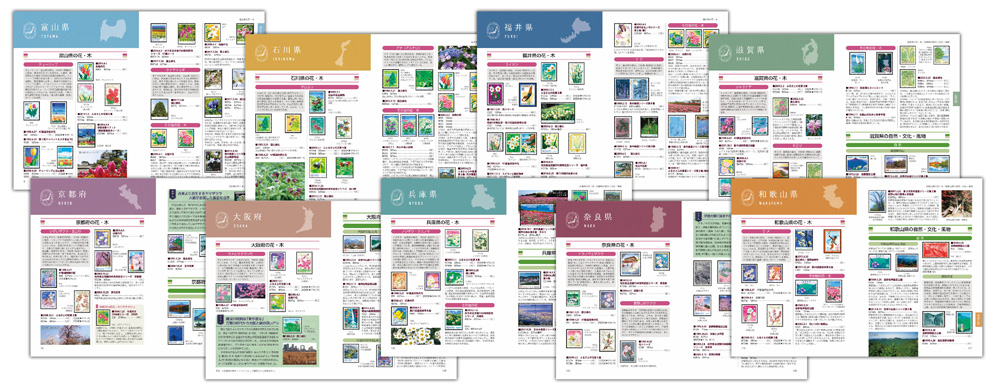 日本全国の"ご当地"ゆかりの切手を採録した「都道府県別日本切手カタログ」第3弾は、北陸・近畿地方の2府7県をご紹介。「花・木」「自然・文化・風物」「人物」「産業・技術」の4項目ごとに分類し、解説や写真、豆知識などを満載した、切手で学べる「日本」をお楽しみください!